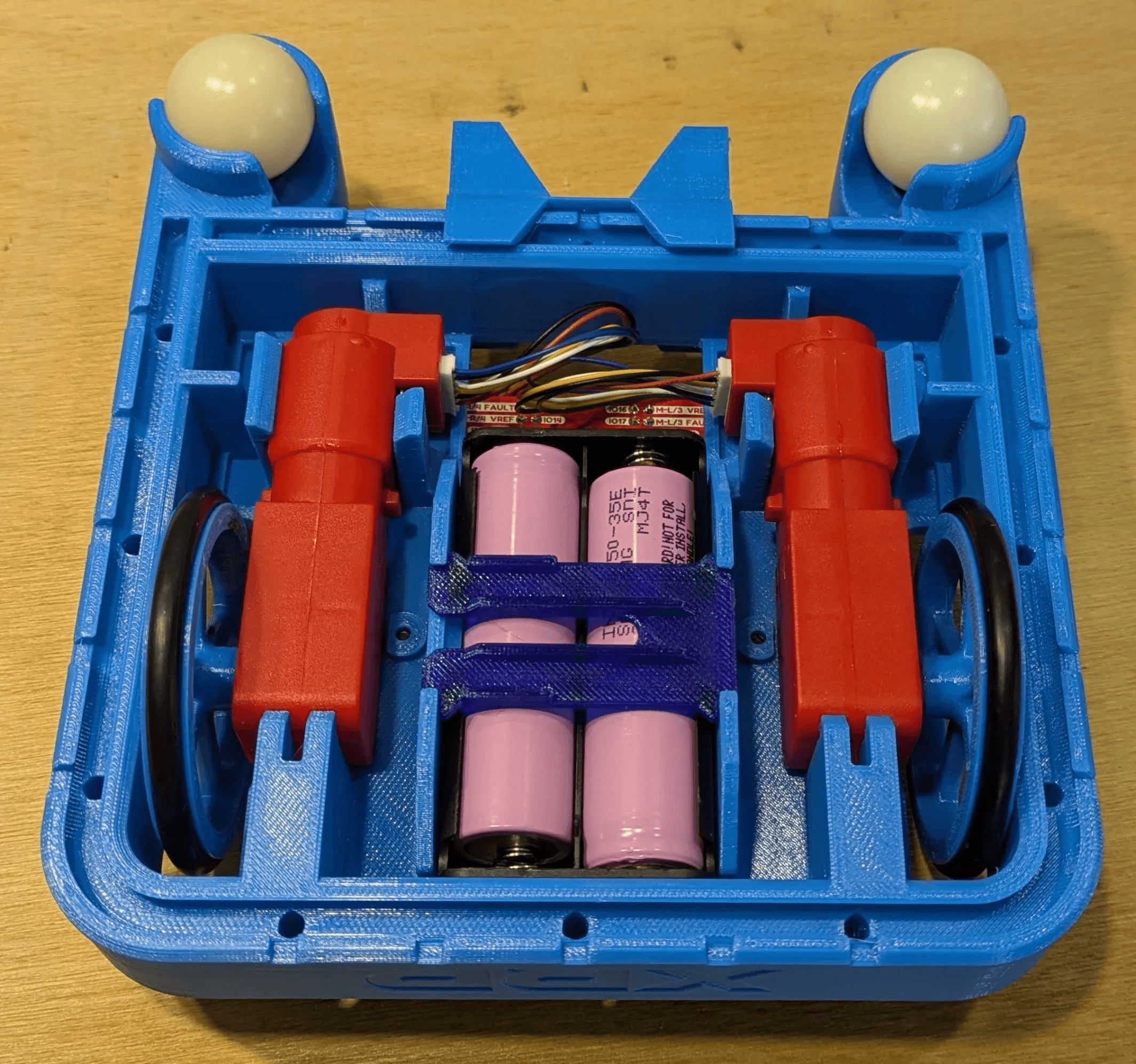 The hardware platform is based on the original two-motor XRP chassis, upgraded with ultrasonic distance sensors, infrared line sensors, and optional servo-mounted components. Custom motor drivers and reinforced frames improve precision and stability, allowing the robot to navigate more complex courses and carry small payloads for testing. Programmable LED indicators provide visual feedback for sensor readings and control states, helping learners understand how the robot interprets its environment.